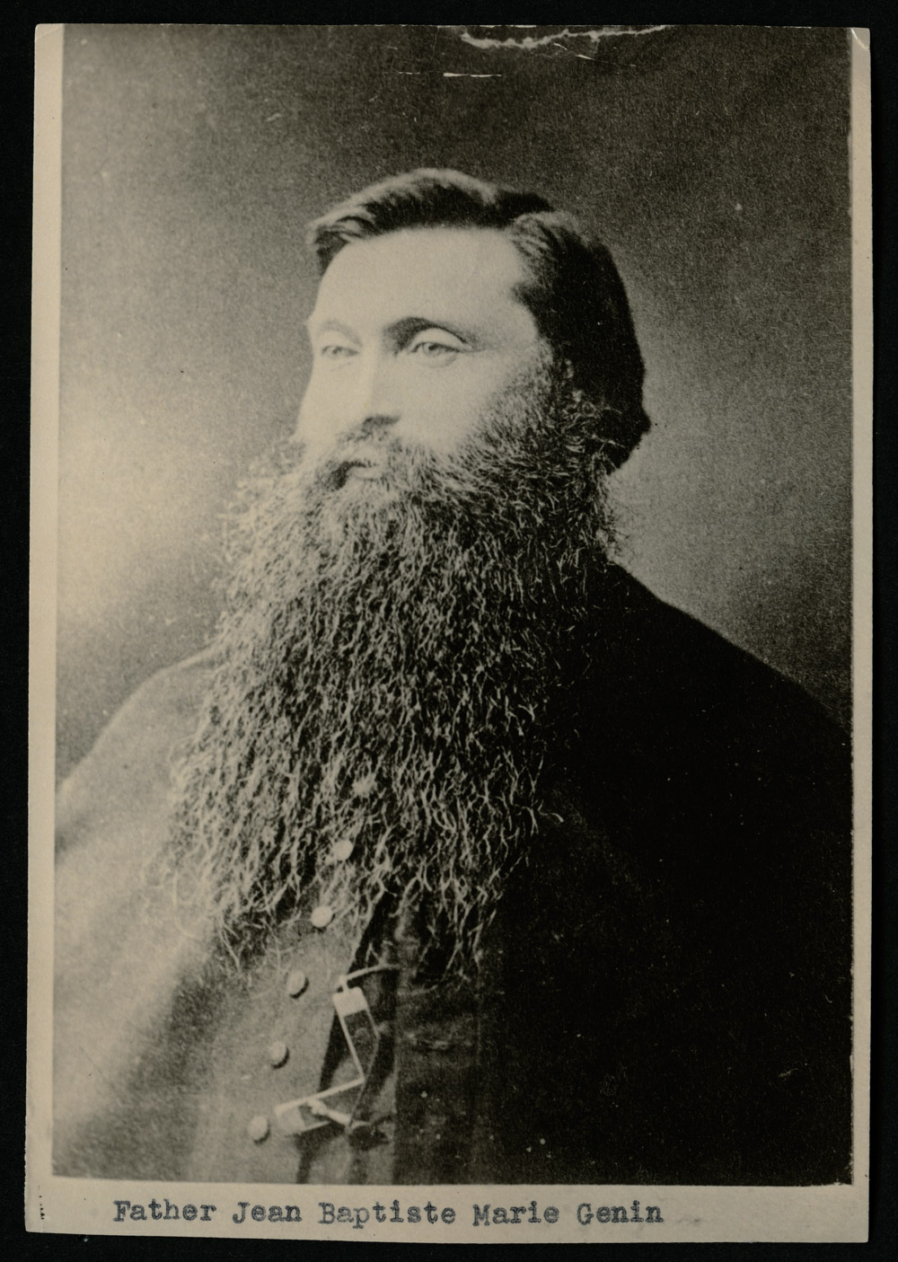 Image 11: Father J. B. M. Genin. This Swiss born Catholic missionary came to Dakota Territory to bring Christianity to the American Indians of the region. He worked first among the Chippewa and later among the Lakotas. He established mission churches in Bismarck and other towns. SHSND A0901-0003