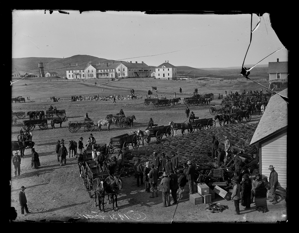 The third supporting question, “how did agriculture change for Native American tribes during this period?” helps frame the concept that not only did several tribes actively participate in agricultural practices for thousands of years, but also that the mid-to late 1800s was a time of upheaval and uncertainty for them and they were expected to make drastic changes to the way they lived. Their hunting territory, treaty lands, and way of life was continually threatened. After the Battle of the Little Big Horn in 1876 the tribal nations were forcibly relocated to reservations by the United States government and their lands were opened to settlement by Americans, Canadians, and Europeans. Tribes that did practice agriculture often had methods and cultural traditions that were very different in comparison to the new settlers. For example, Native American women did most of the farming while in non-Native cultures the men typically managed the farm. Reservations were often located in places where good farmland was not available. The Dawes Act of 1887 (also known as the General Allotment Act) attempted to further alter Native American cultural practices by taking communal property and allotting it to individual tribal members. The Dawes Act was repealed in 1934 and the Indian Reorganization Act of that same year was intended to reverse some of the damage of the Dawes Act and return control of lands back to the sovereign tribal nations. Complete the following task using the sources provided to build a context of the time period and topic being examined.